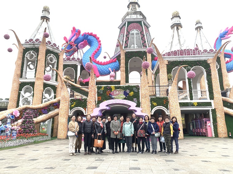 上海浦江郊野公园是一座以森林游憩、滨水休闲为主要功能的近郊都市森林型郊野公园,坐落于黄浦江东侧,大治河以北的浦江镇。公园规划面积15.29平方公里,是上海7个先行试点建设的郊野公园之一。此次恰逢浦江郊野公园奇迹花园“古梦绮花·兽出东方”国风花园艺术展,数位非遗匠人将奇花异草融入中国古典文化,将传统画作、瑞兽等元素在花园景观和主题艺术中呈现,以极具意韵的古典之境诠释东方美学。退休教师们三两结对,或漫步,或停驻,或拍照,或闲谈,尽情享受春天的美好。随后女教职工们又参观了新场古镇,古镇的小桥、流水、人家、长街、茶楼、老店,深深地吸引着大家驻足停留。