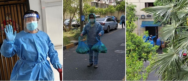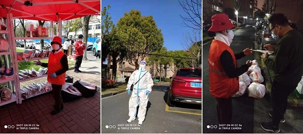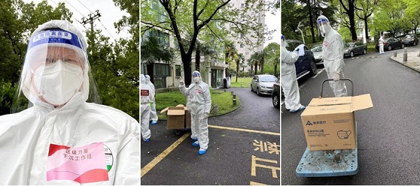 退休十四支部党员沙钝在“先锋上海”社区报到后,就参加了“静安四居委区级力量下沉工作组”群,成为了一名志愿者。4月14日,负责小区防疫物资发放工作。