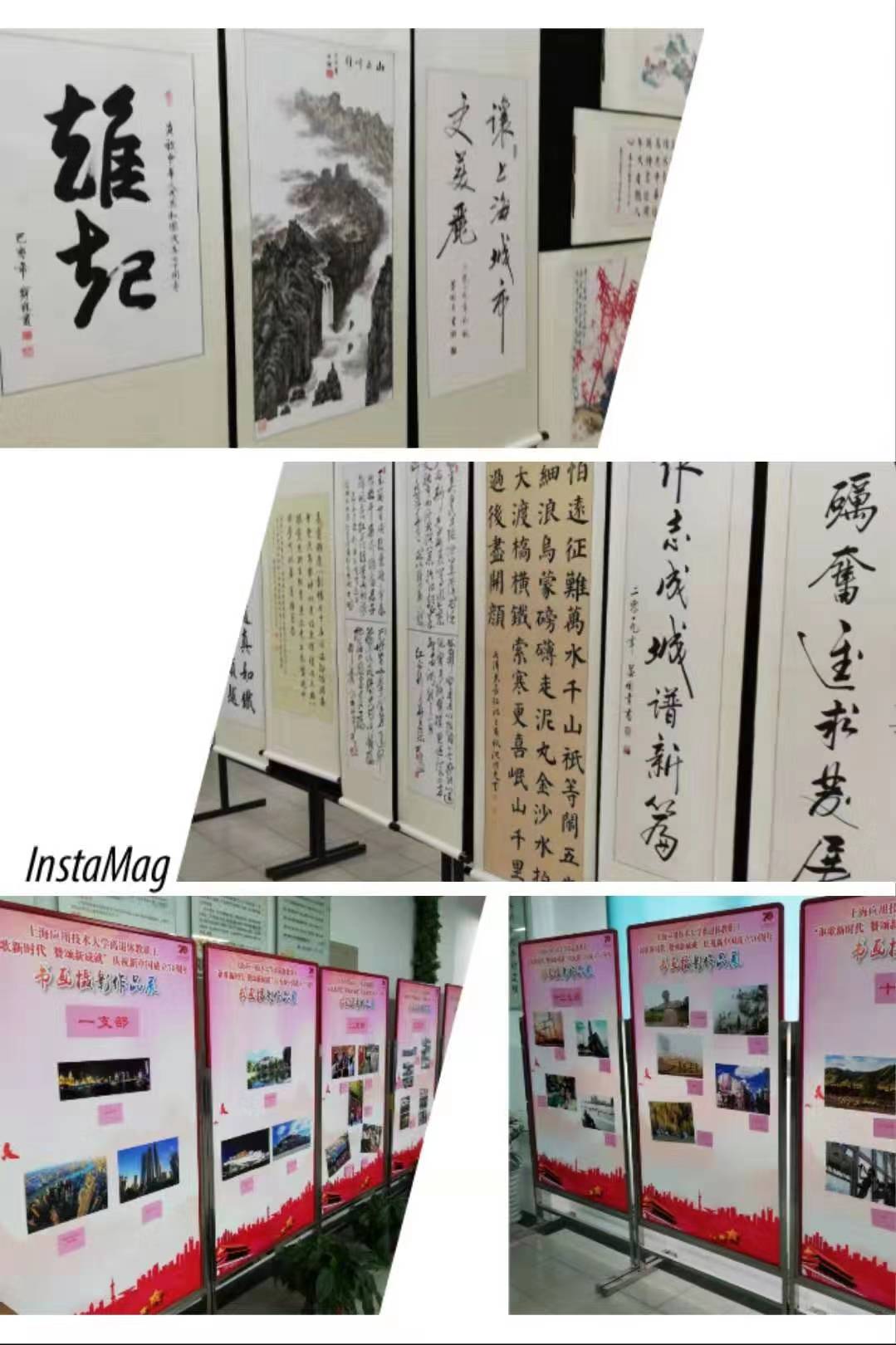 在全国第10个敬老月到来之际,为庆祝新中国成立70周年,展示我校离退休老同志永远跟党走的坚定信念和对美好生活的热切期盼,在校领导的热忱关心和离退休老同志们的积极支持参与下,经离退休党委各党支部和涉老社团的通力合作,上海应用技术大学离退休教职工“讴歌新时代 赞颂新成就”书画摄影作品展于2019年10月14日完成布展工作,将在10月14-25日期间向我校全体离退休教职工开放。并于18日上午在徐汇校区离退委活动大厅启动开展仪式。各党支部组织参展者和党员50余人参加启动仪式和观展活动。