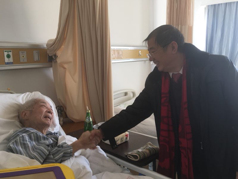 刘宇陆在探望原党委书记祁学银时,亲切询问了祁书记的健康和生活状况,介绍了学校的近期主要工作。祁书记听了非常开心,尤其是对学校正式获批“十三五”应用型本科产教融合发展工程,进入全国100所应用型示范本科高校,高兴之情更溢于言表,他真诚希望学校取得更大的成就。刘宇陆前往华山医院慰问原校长董明柏时,亲切询问了董老校长的健康和生活状况,听取了董校长对学校工作的意见和建议。祝福他新年快乐、阖家幸福、健康长寿。