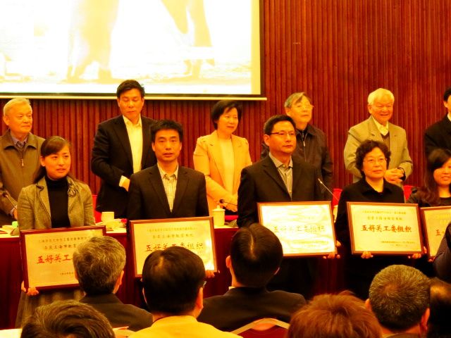 会上,对获得2014年上海市教育系统基层“五好关工委组织”、2013—2014年度上海市高校优秀特邀党建组织等先进集体与先进个人进行了表彰和奖励。我校轨道交通学院和高等职业学院被授予“五好关工委组织”荣誉称号,沙钝同志被授予“2013—2014年度上海市优秀特邀党建组织员”荣誉称号,校关工委名誉主任、德高望重的祝尔纯同志被授予2014年上海市教育系统关心下一代工作“贡献奖”。