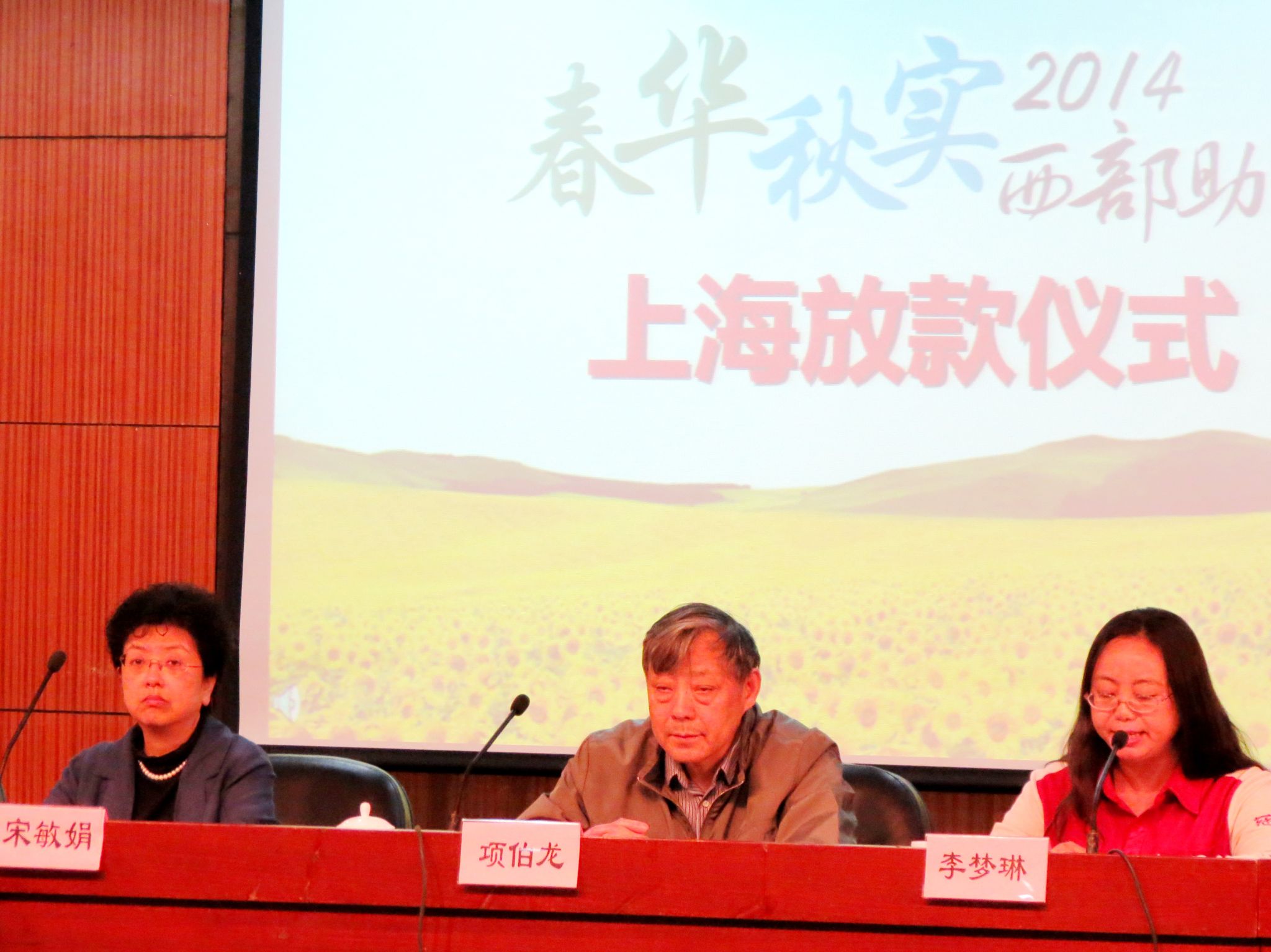2014年10月14日下午,上海市教育关工委、上海慈慧基金会在上海应用技术学院徐汇校区举行“春华秋实”2014年西部助学放款仪式。