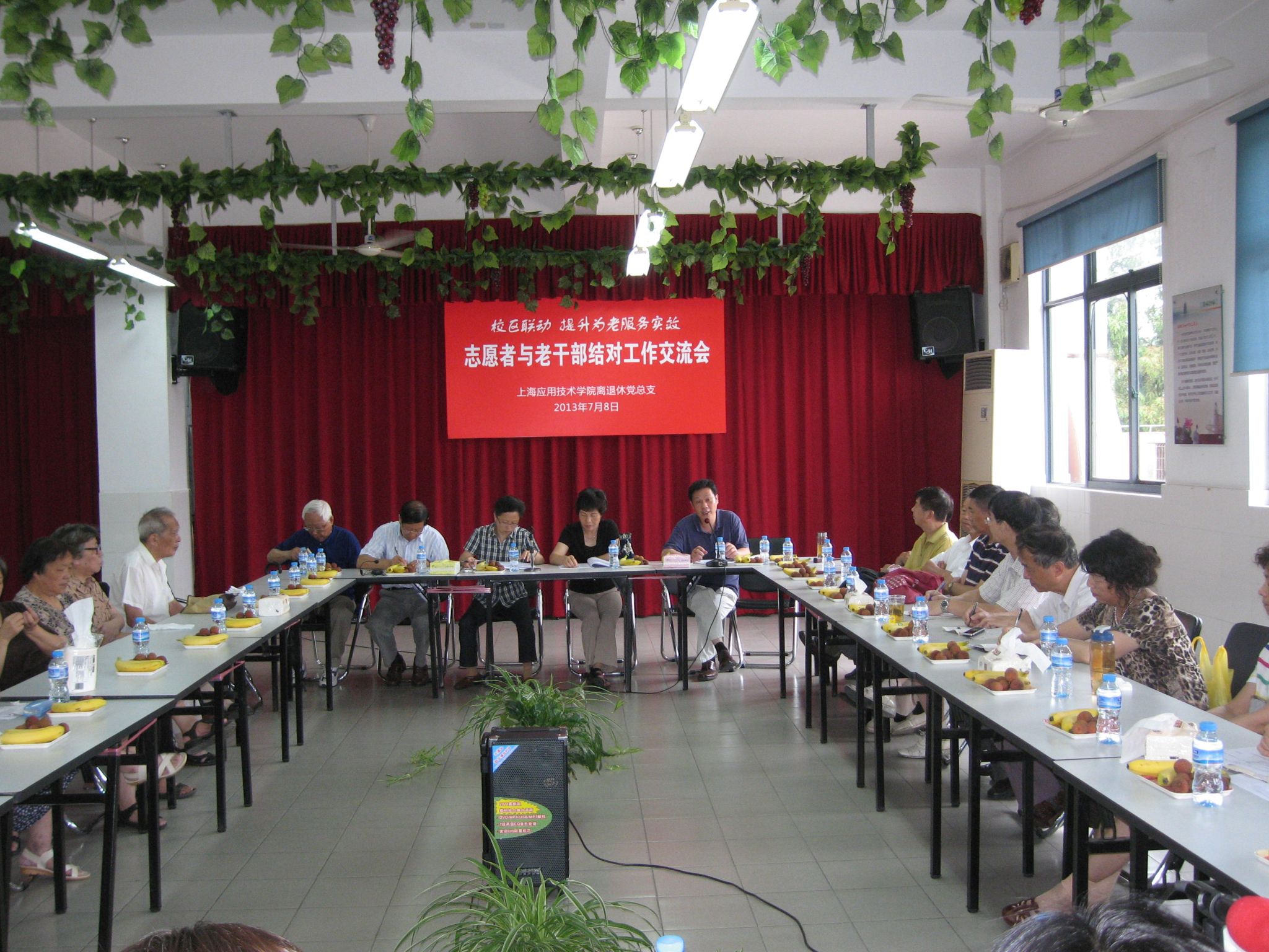 2013年7月8日上午9点,离退休党总支首次召开由学校和社区联动的志愿者与老干部结对工作交流会。康健街道、田林街道、枫林街道的老干部科、组织科以及居委会的相关领导、离退休工作负责人和我校退休党支部的志愿者参加了会议。