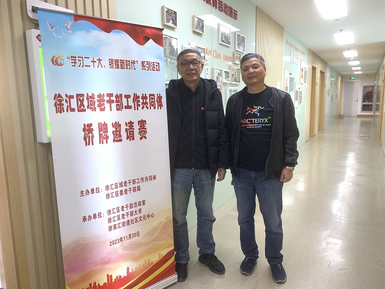 为深入学习贯彻党的二十大精神,持续丰富离退休干部精神生活,结合市老干部活动室“学习二十大,银耀新时代”上海市老干部主题活动相关要求,11月30日,徐汇区域老干部工作共同体举行桥牌邀请赛,我校退休老干部王金明和姚云参加了比赛。