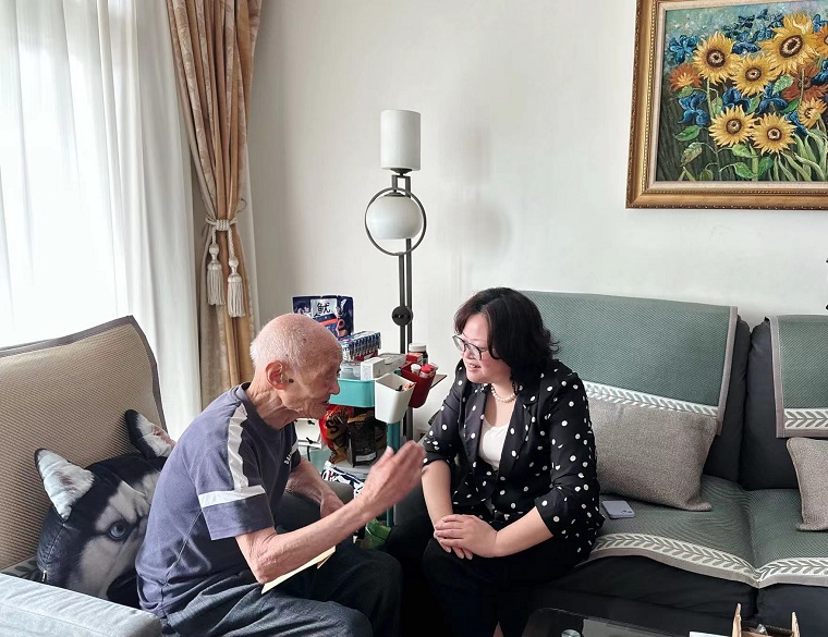 在抗美援朝老战士何荷生家中,97岁依然精神矍铄的何老向陈海瑾书记回忆起昔日峥嵘岁月时条理清晰、讲话中气十足。据何老回忆,他于1950年11月奔赴朝鲜参加抗美援朝志愿军,被编入第12军政治部任英语翻译,先后参加了元山战役、金城战役、上甘岭战役等战役和1953年的停战协议签字仪式和中美战俘交换谈判,直至1954年回国。如今还每天坚持关心国家大事的何老,为能亲身感受到祖国的发展强大感到无比自豪,对学校领导百忙之中送来的关心和慰问表示由衷的感谢。陈海瑾书记对何老在战争年代无畏流血牺牲的革命精神表示崇高敬意,感谢他为新中国建立建设和党的教育事业作出的贡献,嘱咐老人保重身体,安享幸福晚年时光。