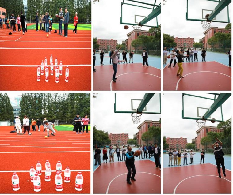 趣味运动会在徐汇校区操场、篮球场和离退委三楼同时进行。本次运动会紧密结合了老同志的身体状况和年龄特点,共设置了飞镖、羽毛球垫球、保龄球、定时投篮、定点夹乒乓球、高尔夫推杆等趣味比赛项目,并设往返40公尺赶猪集体项目,形式多样,玩法简单安全。