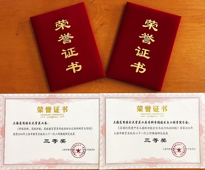 会上,于美华副处长宣读表彰决定,对2018年39项上海市教育系统关心下一代工作课题研究成果奖等进行了表彰奖励。其中,我校机械学院关工委分会课题组的《科技创新,思政导航:思政教育贯穿科技创新全过程的研究和实践》和香料学院关工委分会课题组的《区域化党建中关工委的功能定位与运行机制初探》双双荣获2018年上海市教育系统关心下一代工作课题研究成果三等奖。