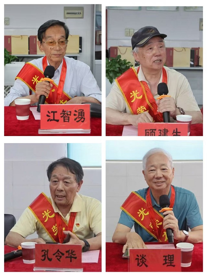 老党员们佩戴着纪念章,激动之情溢于言表。江智湧讲述了自己在家庭和党组织影响下形成的入党初心和砥砺奋进的工作场景;顾建生回顾了从小接受党的教育的历程,表述了弘扬正能量的使命与担当;孔令华表示要大力弘扬伟大建党精神,共产党员政治本色永不褪;谈理用“入党五十载,初心记心怀。技能报祖国,勤舟渡学海”一首小诗,深情抒发了对党的热爱之情和对教育事业的执着追求。老党员们纷纷表示,奖章是鼓励,是鞭策,是责任,是动力,入党初心永不变,在党需要的时候持续发光发热。