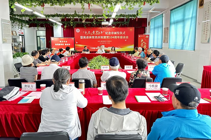 学校举行“光荣在党50年”纪念章颁发仪式暨离退休党员庆祝建党104周年座谈会