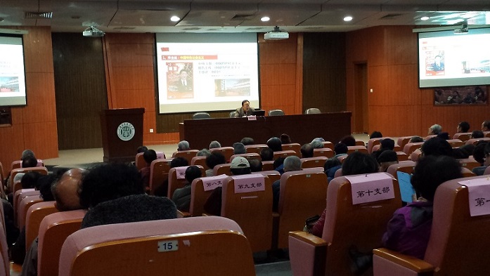 为认真学习贯彻党的十九大精神,12月5日上午,离退休党总支邀请了上海市委讲师团成员,上海市委党校马克思主义学院的袁秉达教授来校作“新思想 新时代 新征程 学习党的十九大会议精神”的辅导报告。在今年气温最冷的上午,离退休总支近300名党员同志和田林社区的党员代表一起在徐汇校区图书馆116参加聆听,并领取了新党章和十九大报告单行本。