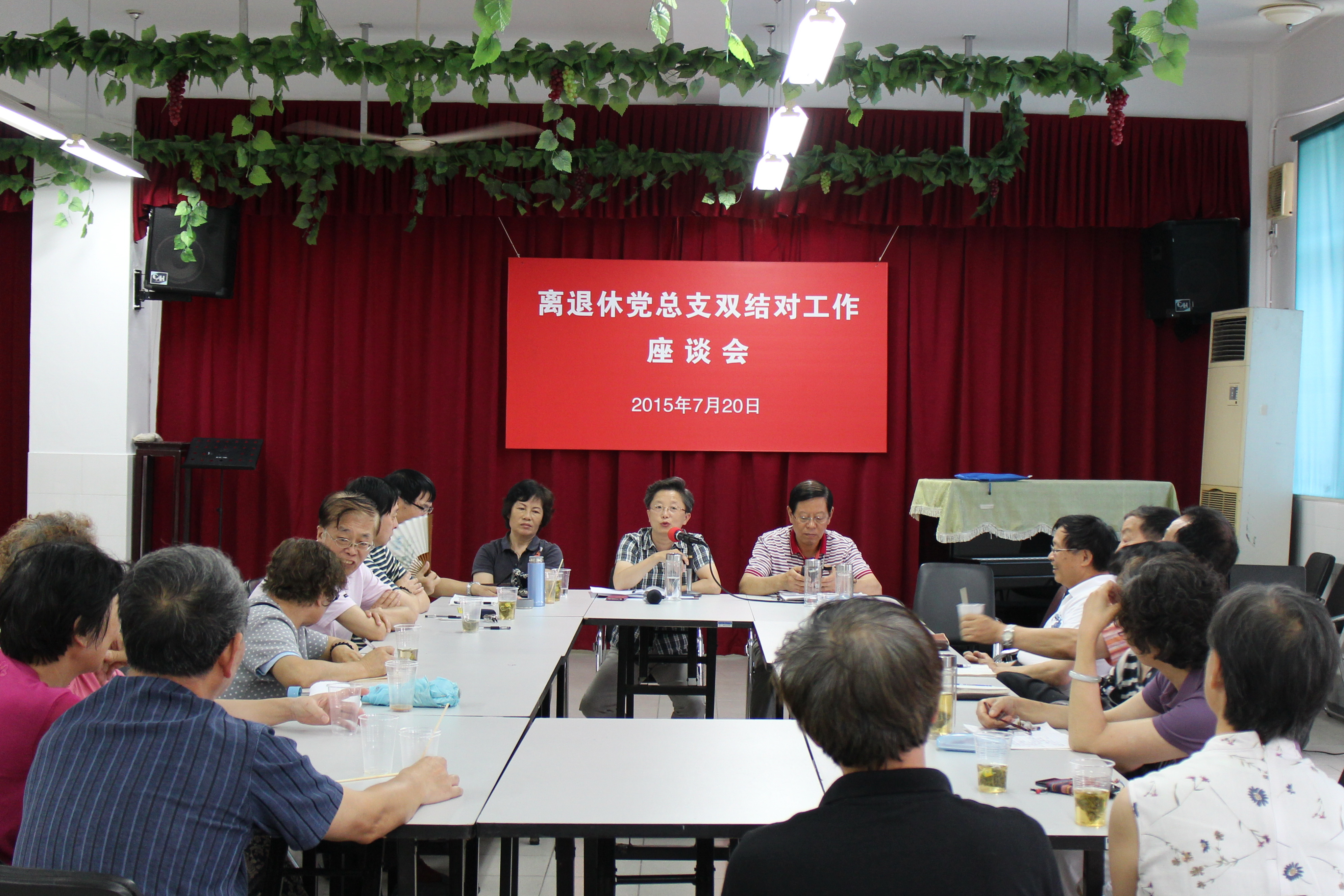 2015年7月20日上午,离退休党总支在徐汇校区离退休职工活动之家召开志愿者“双结对”工作座谈会。