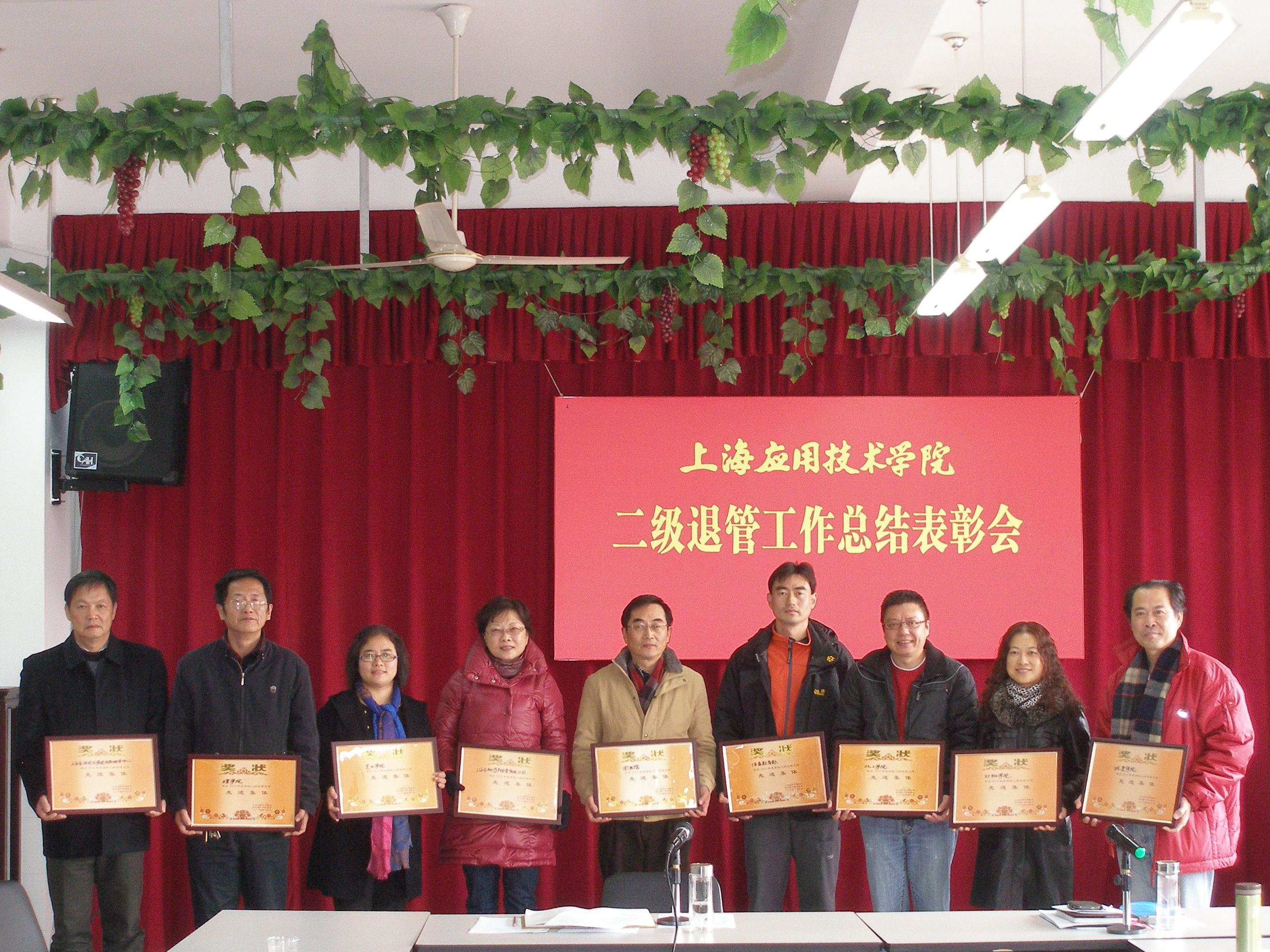 经推荐评选:应翔公司(产业)、图书馆、体教部、材料学院、后勤(乙方)、城建学院、理学院、艺术学院和化工学院九个部门获得2014年度二级退管工作先进集体。(离退休工作 李云)