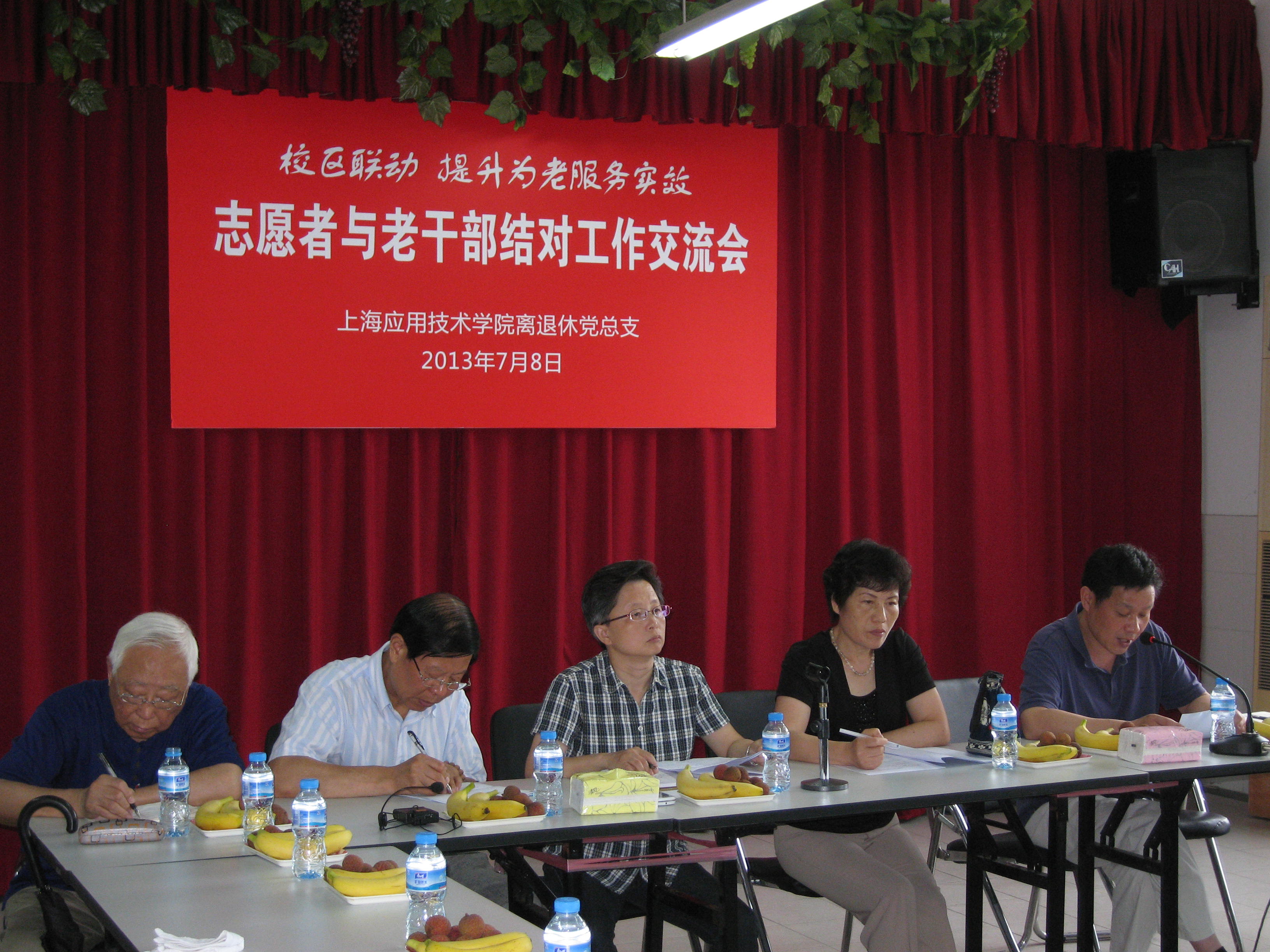 2013年7月8日上午9点,离退休党总支首次召开由学校和社区联动的志愿者与老干部结对工作交流会。康健街道、田林街道、枫林街道的老干部科、组织科以及居委会的相关领导、离退休工作负责人和我校退休党支部的志愿者参加了会议。
