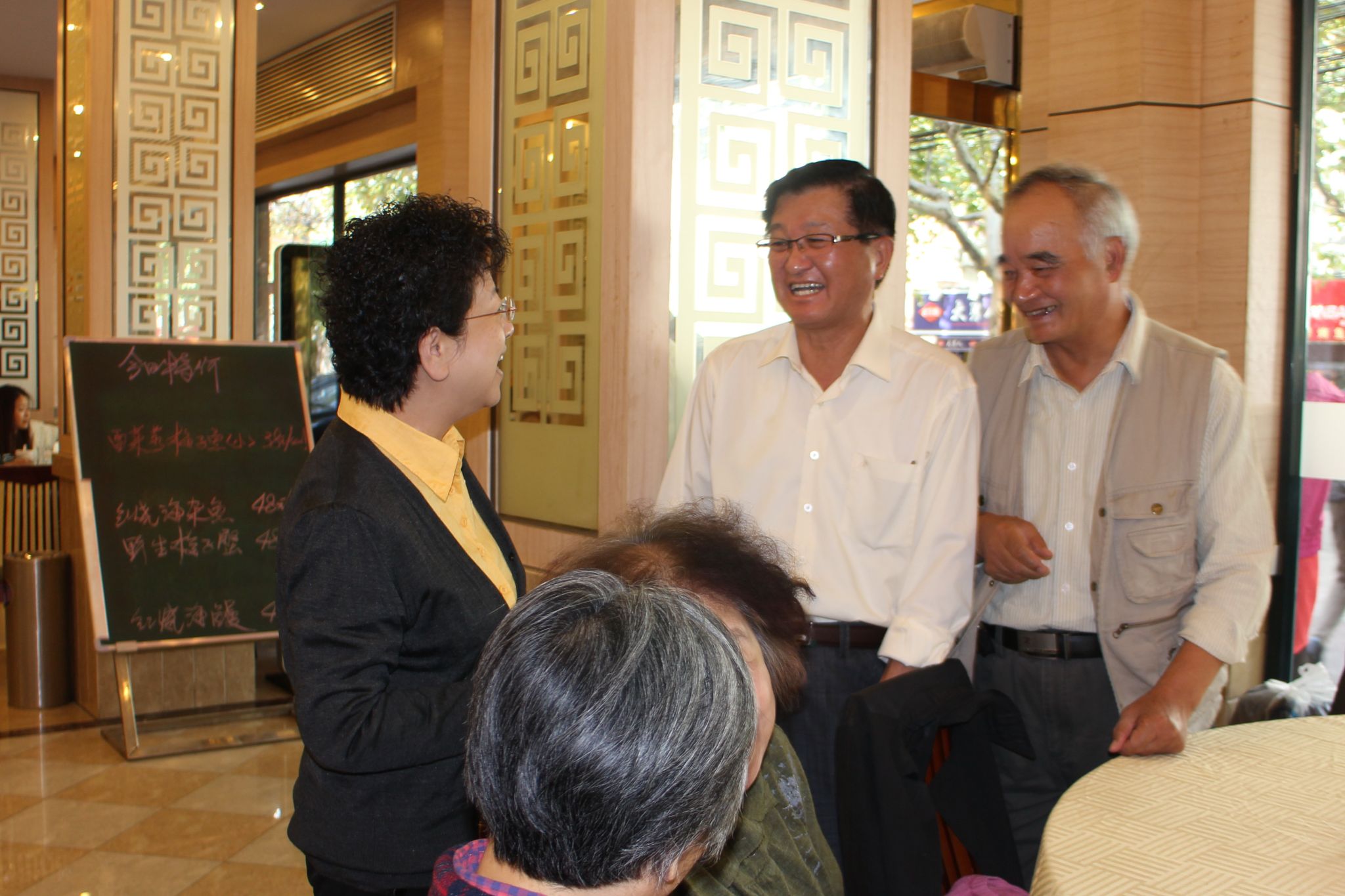 2014年10月14日上午,我校52名年满七十周岁的退休职工带着喜悦精神抖擞地来到徐汇校区,老同事、老朋友相聚格外亲切,大家有说不完的话,道不完的情。回忆着在学校工作的亲历亲为和退休以后十多年的生活,一种满足和幸福感从他们爽朗的笑声中溢出。
